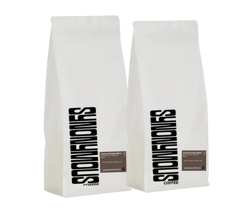 The Common Threads blend works best for white coffees where the big chocolate-caramel-malty notes can push through. For black coffee you can expect a cup that is robust tasting.
